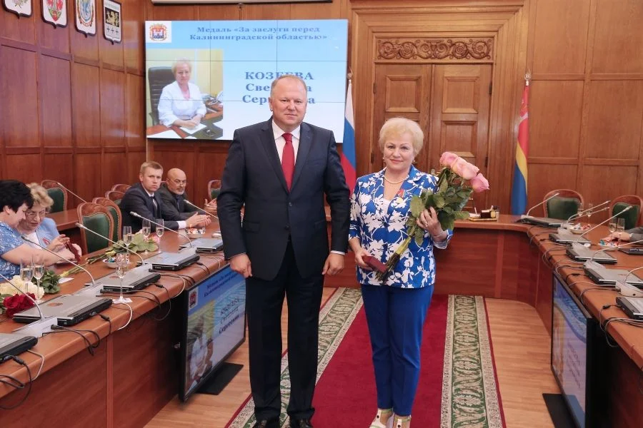 Медаль «За заслуги перед Калининградской областью» получила заместитель главного врача по медицинской части Городской поликлиники № 1 Светлана Козеева. Светлана Сергеевна без малого 40 лет работает в отрасли, организовала работу врачей по ведению электронных медицинских карт и электронной записи пациентов на прием, передает свой опыт молодым специалистам.